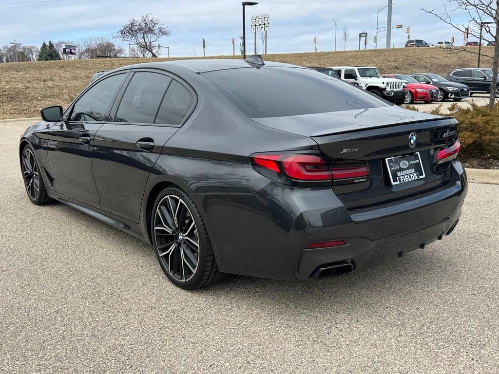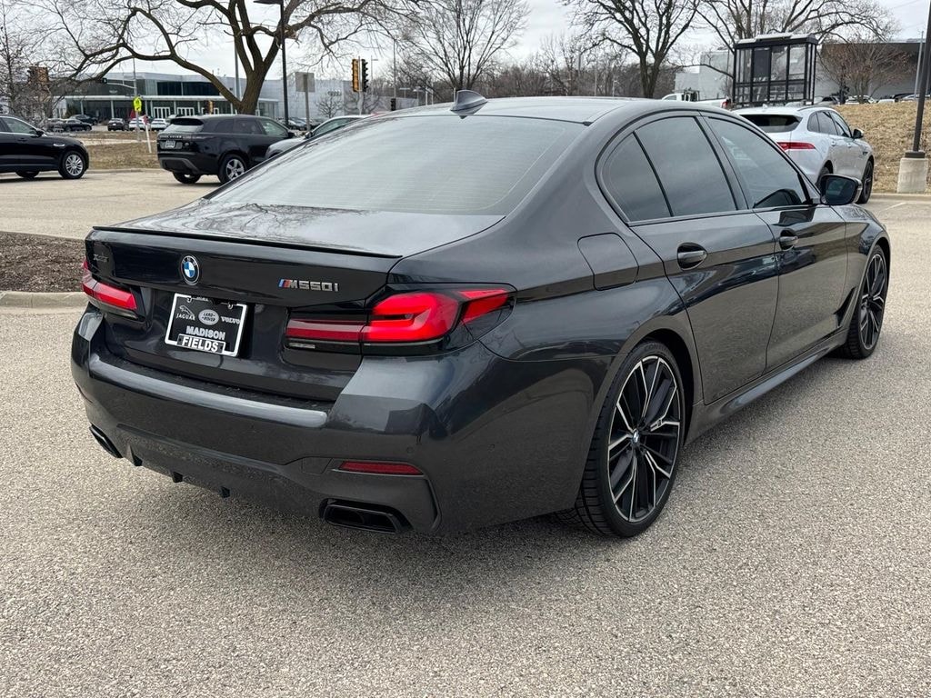 Dark Graphite 2022 BMW 5 Series M550i xDrive AWD 8-Speed Automatic Sport 4.4L V8 Twin Turbocharged AWD, Black Leather, 16 Speakers, Active Driving Assistant Pro, Active Roll Stabilization, Adaptive M Suspension Professional, AM/FM radio: SiriusXM with 360L, Anthracite Alcantara Headliner, Apple CarPlay & Android Auto Compatibility, Auto High-beam Headlights, BMW Assist eCall, BMW TeleServices, Ceramic Controls, Connected Package Pro, Dakota Leather Upholstery, Driving Assistance Professional Package, Dynamic Handling Package, Emergency communication system: BMW Assist eCall, Executive Package, Extended Shadowline Trim, Extended Traffic Jam Assistant, Exterior Parking Camera Rear, Front & Rear Heated Seats, Front dual zone A/C, Front Massaging Seats, Front Ventilated Seats, Garage door transmitter, Gesture Control, harman/kardon Surround Sound System, harman/kardon® Speakers, Head-Up Display, Heated Steering Wheel, Illuminated entry, Individual Piano Black Finish Trim, Integral Active Steering, Live Cockpit Pro, M Shadowline Lights, Multi-Contour Seats, Navigation System, Power Front Seats, Power moonroof, Power Rear Sunshade, Rain sensing wipers, Remote keyless entry, Remote Services, Shadowline Package, SiriusXM w/360L, Split folding rear seat, Sport steering wheel, Telescoping steering wheel, Tilt steering wheel, Wheels: 20" x 8" Fr & 20" x 9" Rr M Y-Spoke.